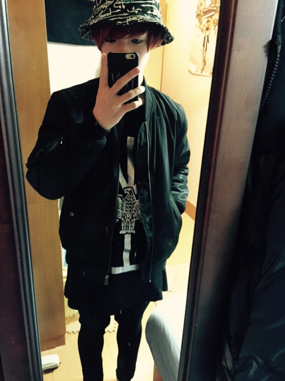 昨日古着屋でかわいいステューシーのバケットハットを1500円で購入して早速合わせてみました!安い!!(笑) 部屋と鏡が汚いですが、あまり触れないでください(笑)
