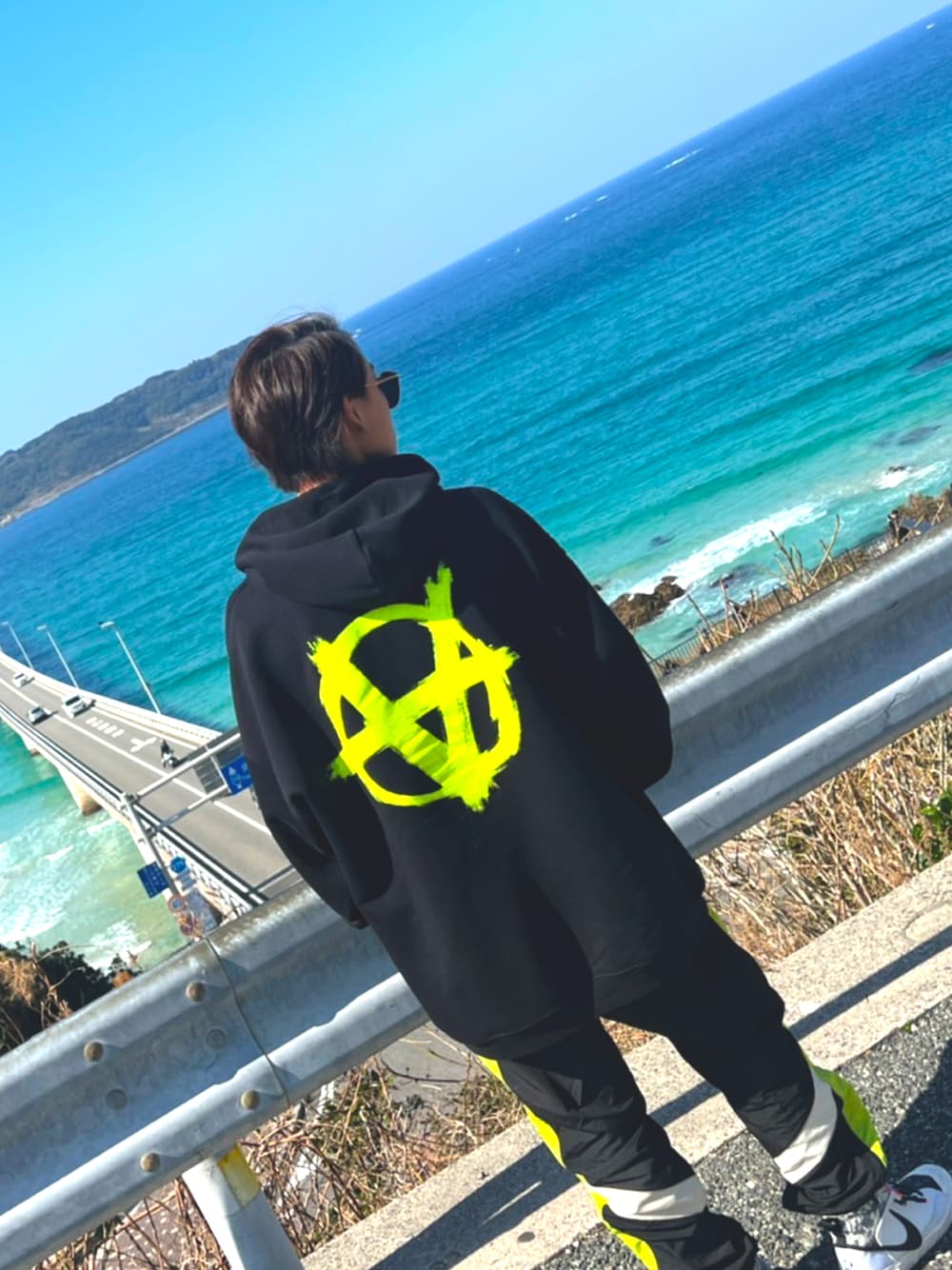 皆さんはじめまして☺️ 閲覧頂きありがとうございます。 使い方とか全然分からないし、低浮上と思いますけどよろしくお願い致します😌 最近ヴェトモンにハマっておりまして、春先までは対応出来るコーデだと思います👍 上下の色を統一させたのがポイントです✨ 角島で撮影するとどんな格好でも映えますね😎