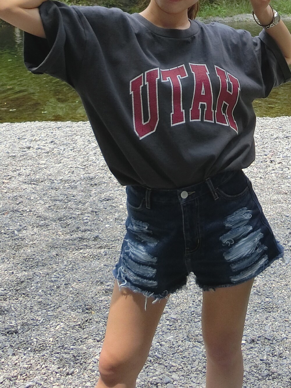 BBQstyle👚🥓 川に入れるようにショートパンツで👌🏻💧