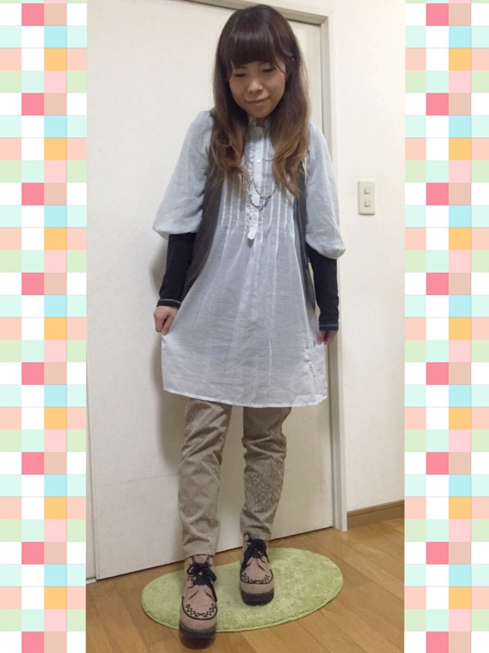 お久しぶりの投稿です。 長年愛用している水色ワンピ。 繊細な薄さが好きです。 WEARで登場してばかりのサーモンピンクシューズ(笑) ワンピース:E hyphen world gallery ベスト::E hyphen world gallery ロンT:不明 シューズ:ARROW(頂き物)
