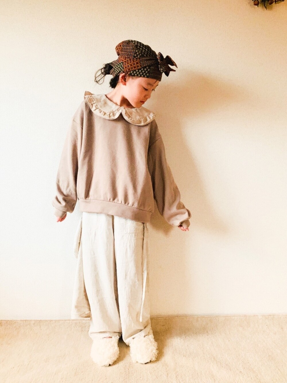 riccarinのスウェット「あったか 裏起毛 ガールズ 長袖 ロングスリーブ ミドル丈 トレーナー フロントフリル バックフリル 肩タックフリル フリル襟」を使ったコーディネート