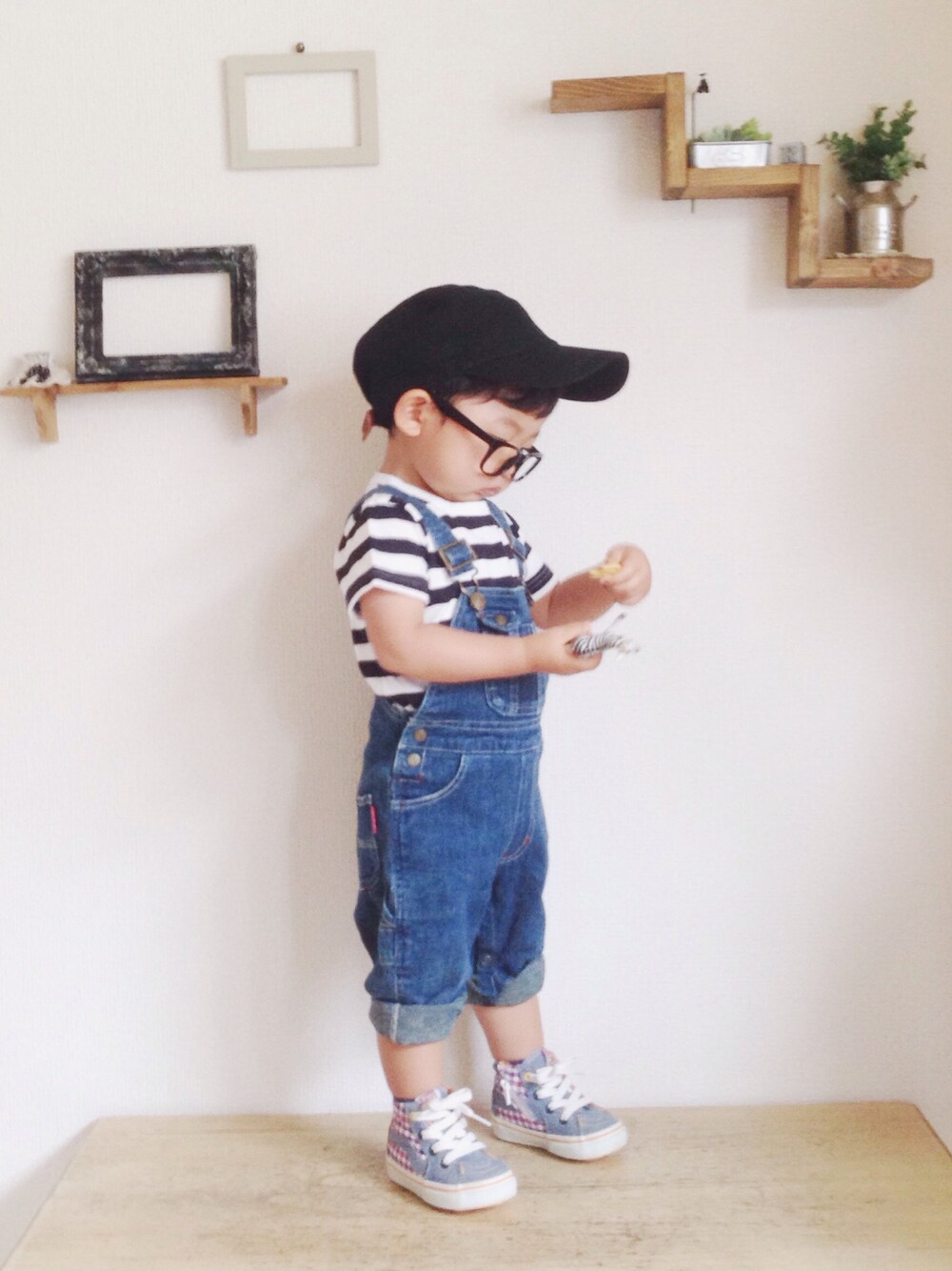 cap / GLOBALWORK T-shirt / 無印良品 overalls / used shoes / VANS かわいいあの子のまねっこコーデ♡ ブラックだと思ってたボーダー、 ネイビーでした。。笑