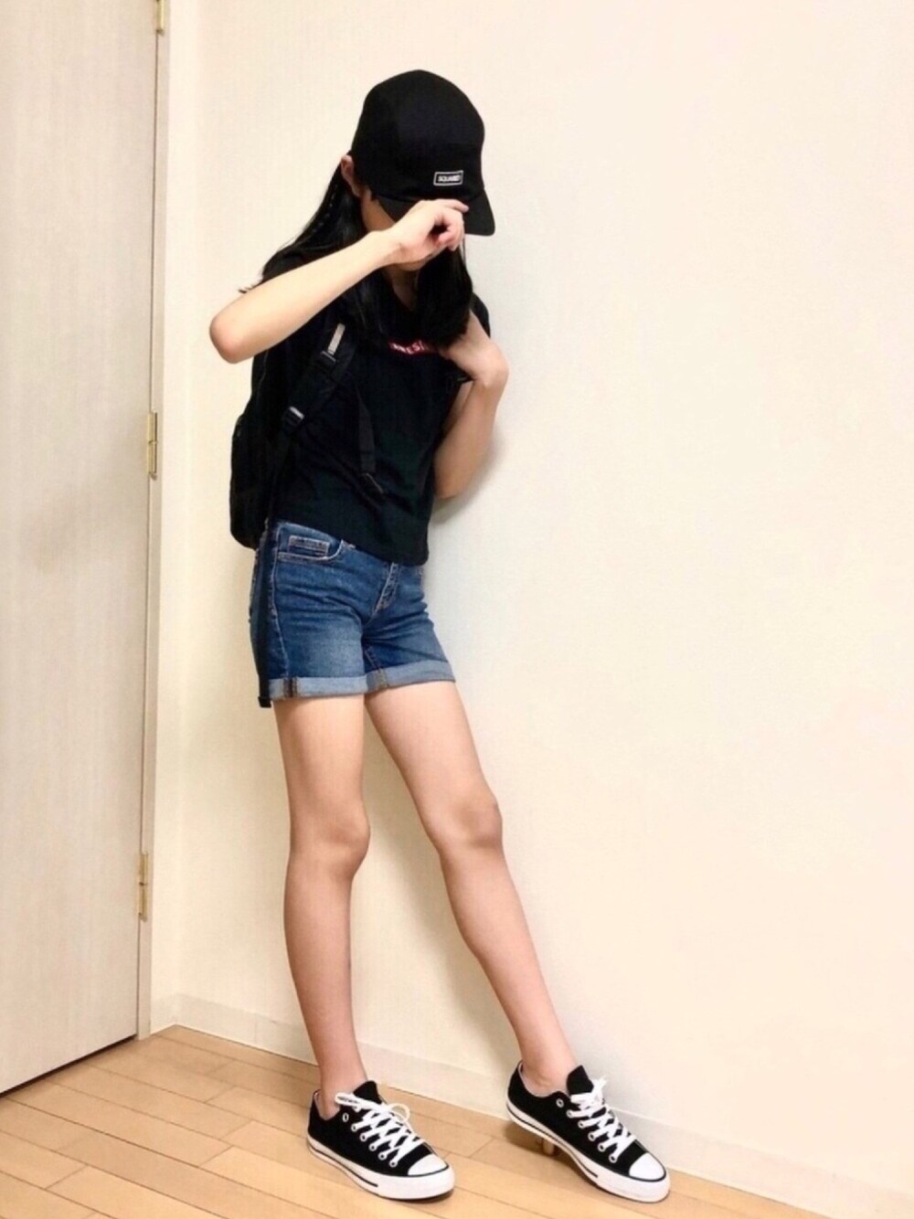 ご覧いただきありがとうございます😊 今日もカジュアルにショートパンツで♪ glowbalworkで揃えてみました。 女の子の黒って案外嫌いじゃない。 #ギャップも#ロゴTも#リュックも長ーく使える優れものです!