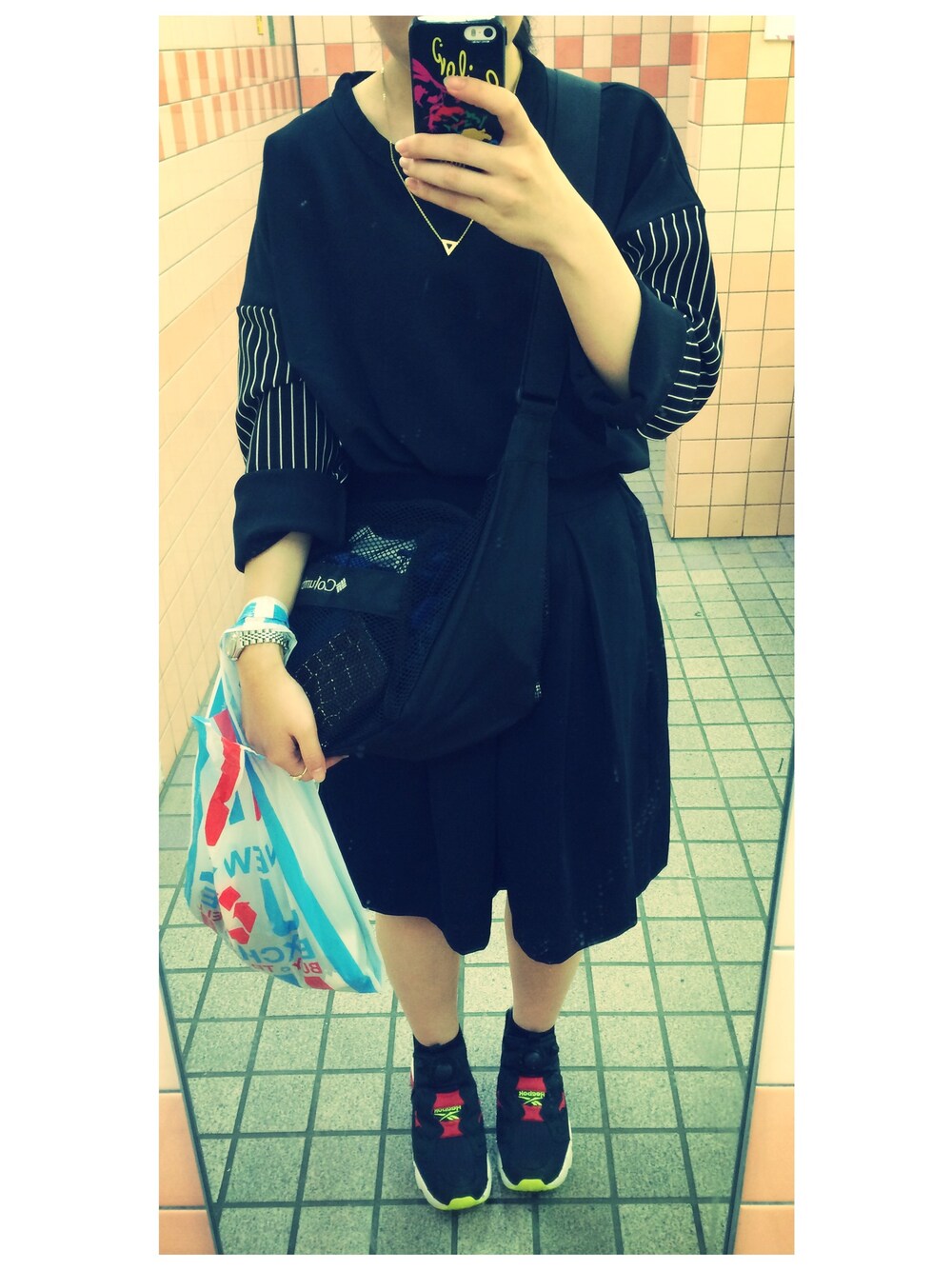 トップスは三連休にソウルで買ったもの。 かばんはColumbiaのメッシュバッグ。