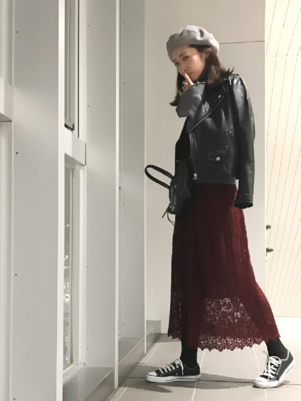 NATSUKI のライダースジャケット「【展開店舗限定】ラムレザーライダースジャケット」を使ったコーディネート