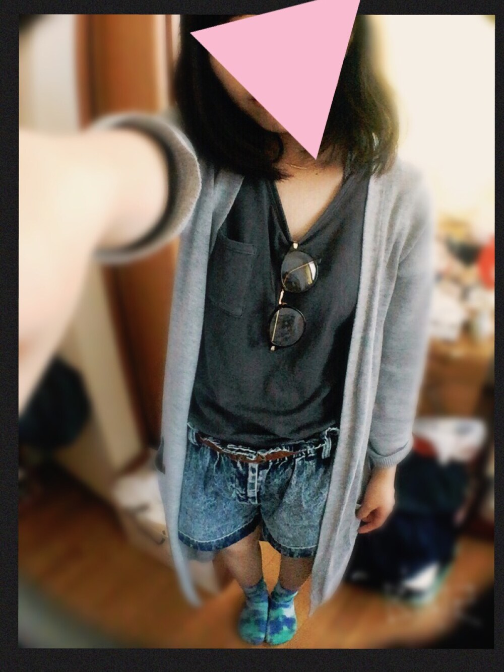 ロングカーデ着まわし⸜( ⌓̈ )⸝ タイダイ柄ソックスに コンフォートサンダルを合わせました! あぁ、撮影方法上手くなりたい…(´;ω;`)