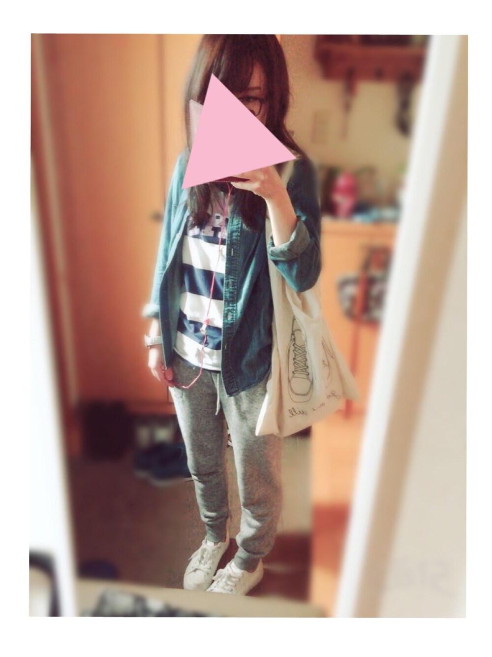 いつかのコーデ。 わんこの散歩しか行ってないから すっぴんだし眼鏡ですー。 スウェットらくちん( ˘ω˘ )💓