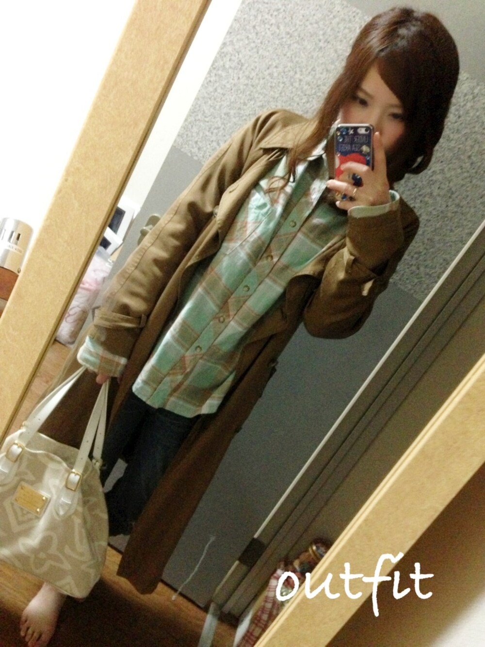 2015.3.25 買ったばっかの 一目惚れのシャツと トレンチ合わせた〜♡¨̮ そしてこれにひさびさのヒール☆ 映画たのしかった〜。
