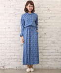 ブルー系のサロペット/オーバーオールを着用したレディースの秋コーディネートの1枚目の写真
