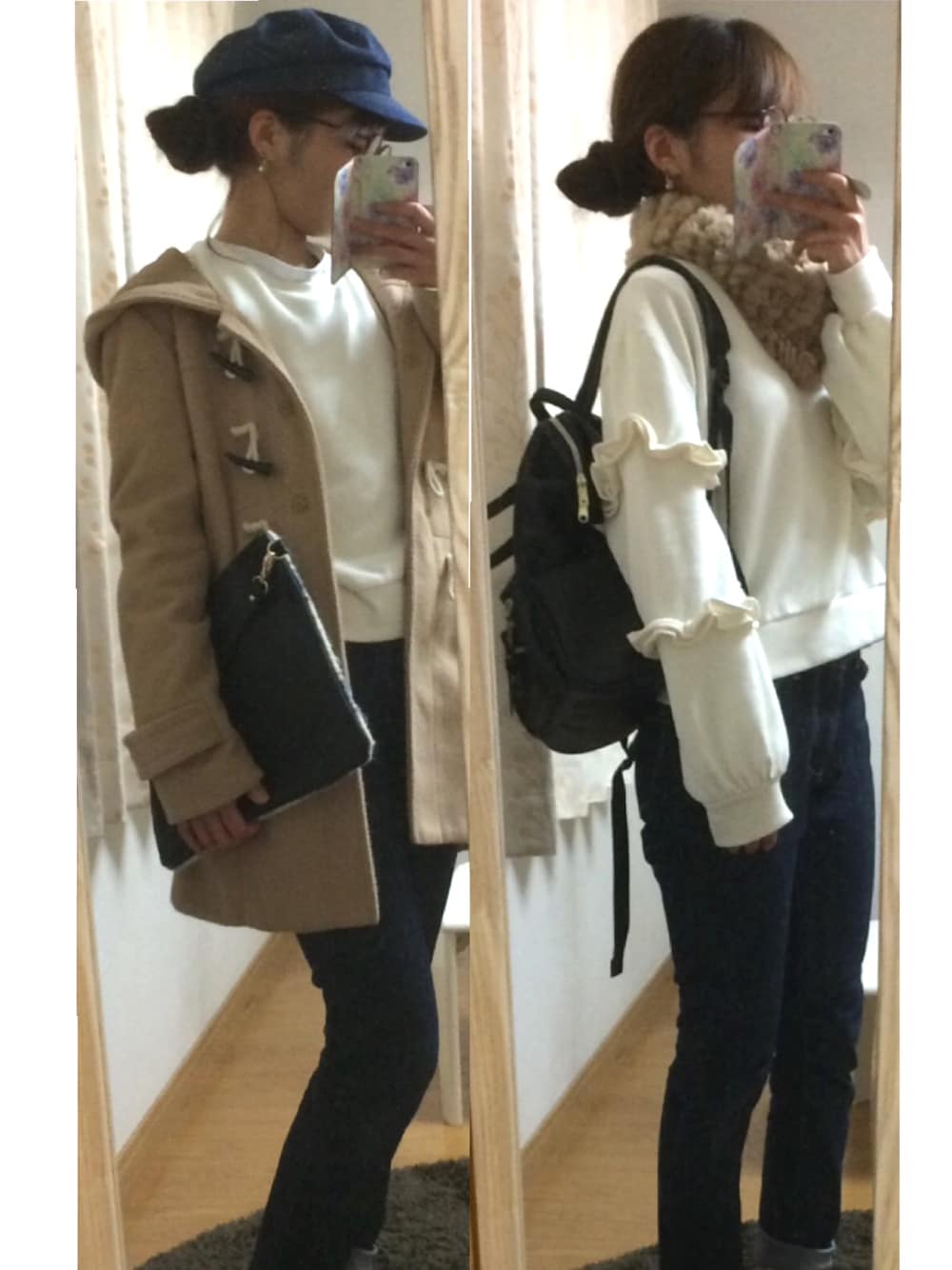 トップス ¥900 GAPさんのパンツ¥500 グローバルワークさん クラッチバック ¥900 最近スヌードを愛用しています😋 薄着でもおどろくほどあったかい〜 ⚠︎風邪引いちゃうのでみなさんは上着きてください! トップス短めでスタイルup(したいな〜笑🌟)