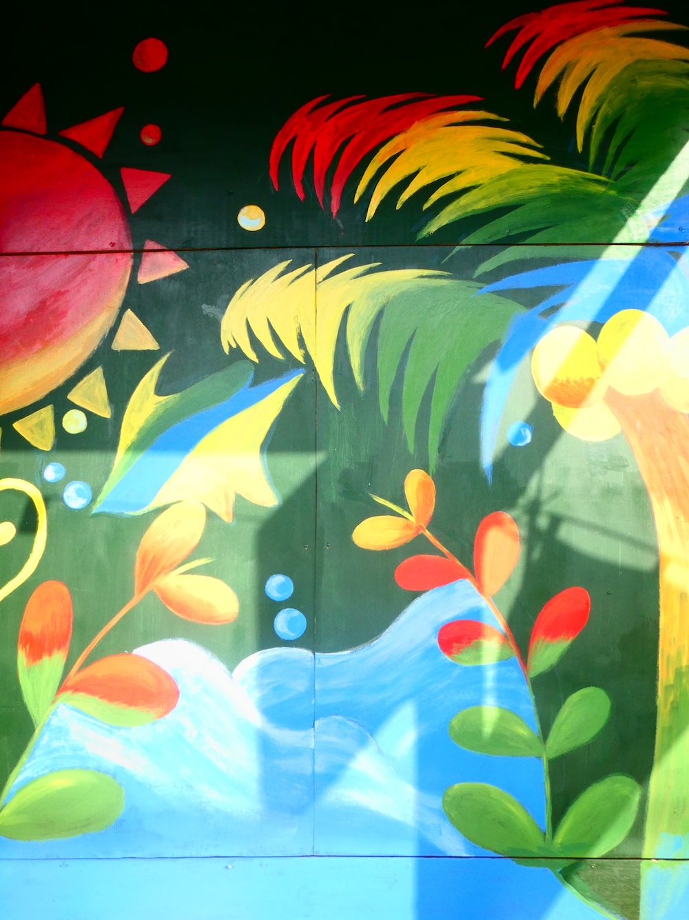 沖縄 美ら海カフェにて。 お店の壁に私が描いた絵です! (加工なし) 7月にはデザインTシャツを完成^^ 沖縄で私のデザインを残す!そんな思いです。 活動名は I66