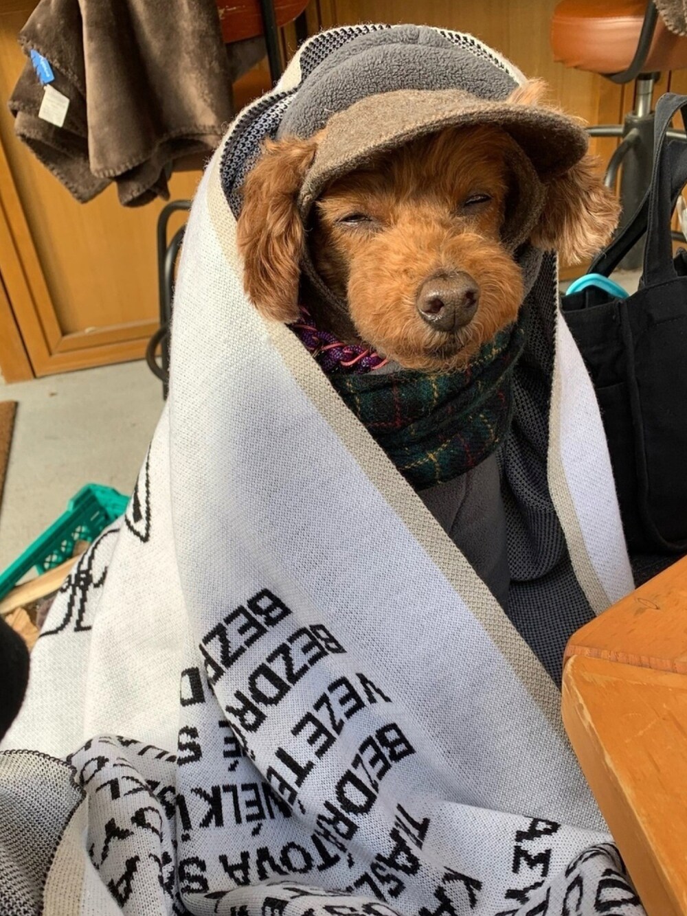 Richard(リチャード・犬)のストール/ショール「BIG ROGO STOLE」を使ったコーディネート