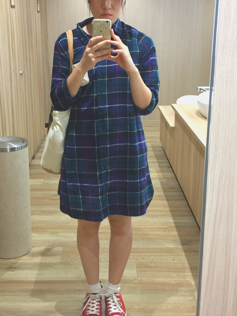 りっこのシャツワンピース「ニットポケットネルシャツワンピース」を使ったコーディネート
