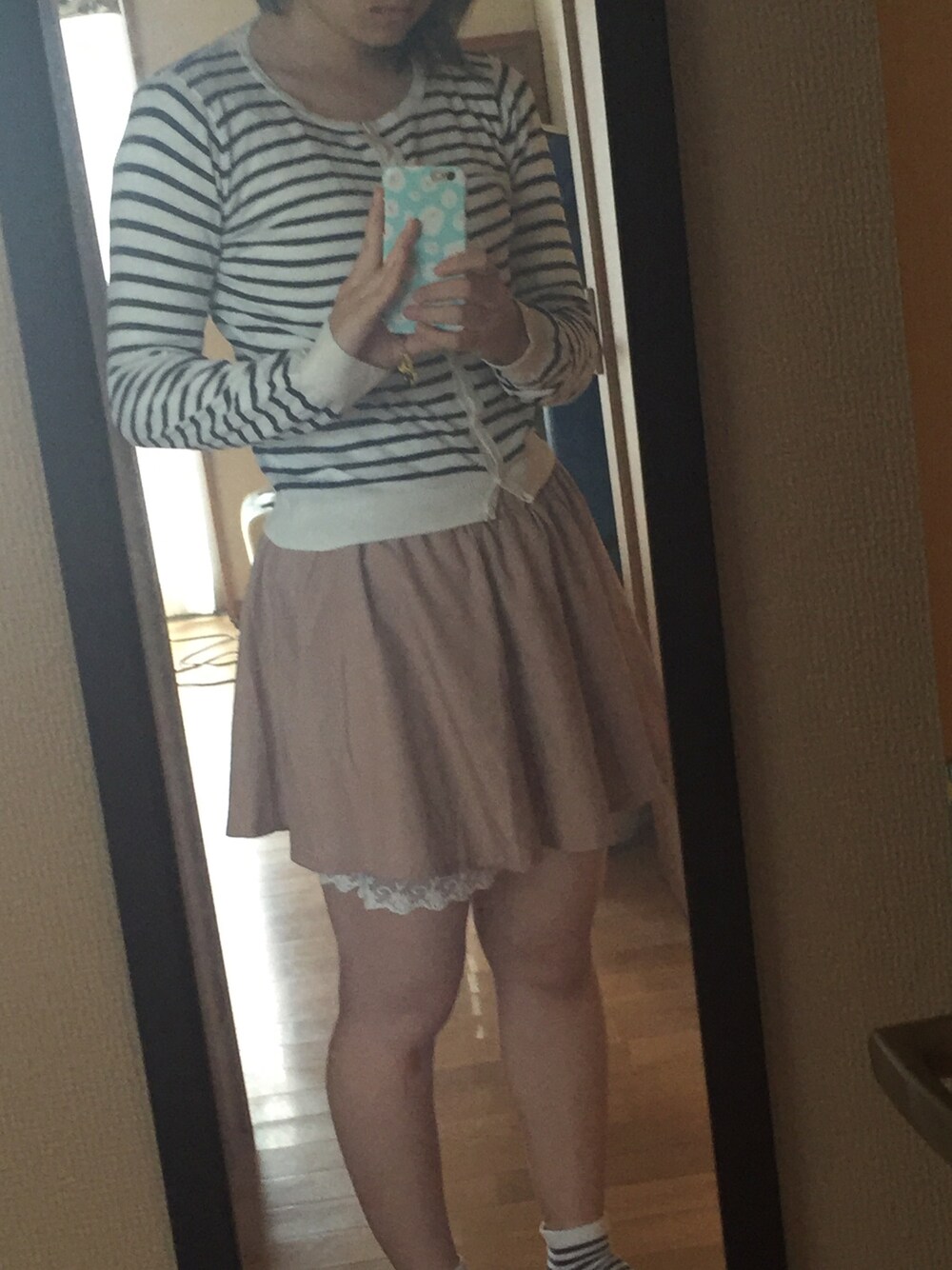 キュロットなのでおうちの楽ちんコーデ 色合いもベージュとモノトーンなので落ち着いた雰囲気で リラックスしますー٩(ˊᗜˋ*)و