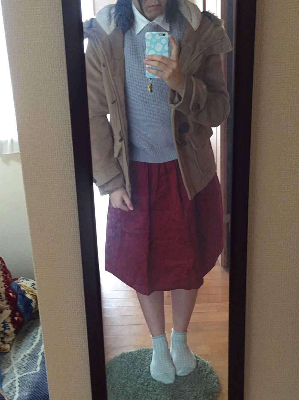 さっきあげたワンピを今日のお出かけ仕様に ワンピのスカートの上にスカートをあわせてます ダッフルとえりとミモレのスカートでいいこちゃんな学生風 で、カラオケいってきます笑