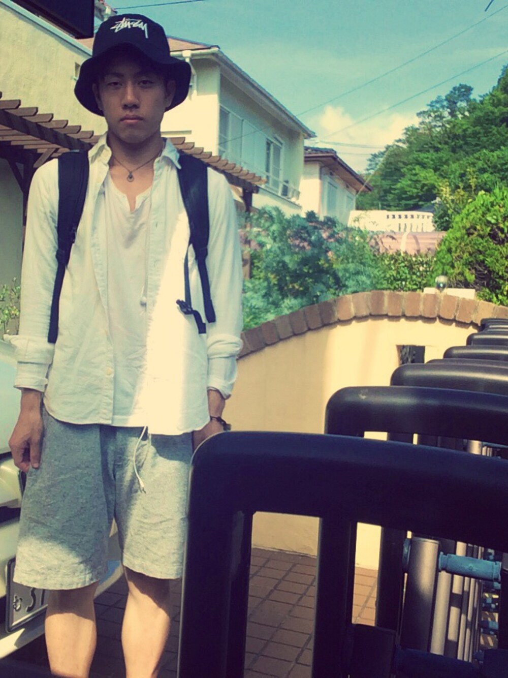 白Tの上から白シャツ。