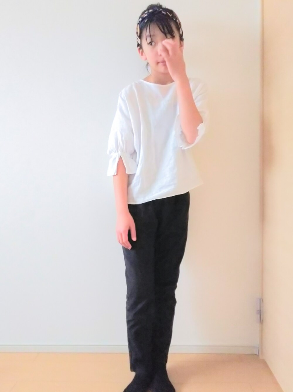 シンプルだけど、娘お気に入りのコーデ🦓❤️ カジュアルにもキレイめにも着られるブラウスは、母とオソロイ👭💓