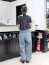 〈デニム〉(サイズ⇨M) →とっっても穿きやすいデニム!!! 夏はデニムは暑いというイメージでしたが、 こちらは生地感が薄めなので、夏も暑くなく穿けます🥹 リボンがウエストについているので、ベルトがわりになります🙆🏻♀️ 〈トップス〉(サイズ⇨フリー) →ベロアは今年の秋も人気です!!🍂 裏地がメッシュ素材なので、今の時期から着ていただけます💞 ベロアを取り入れるだけで一気に秋コーデでテンション上がりますよ😳