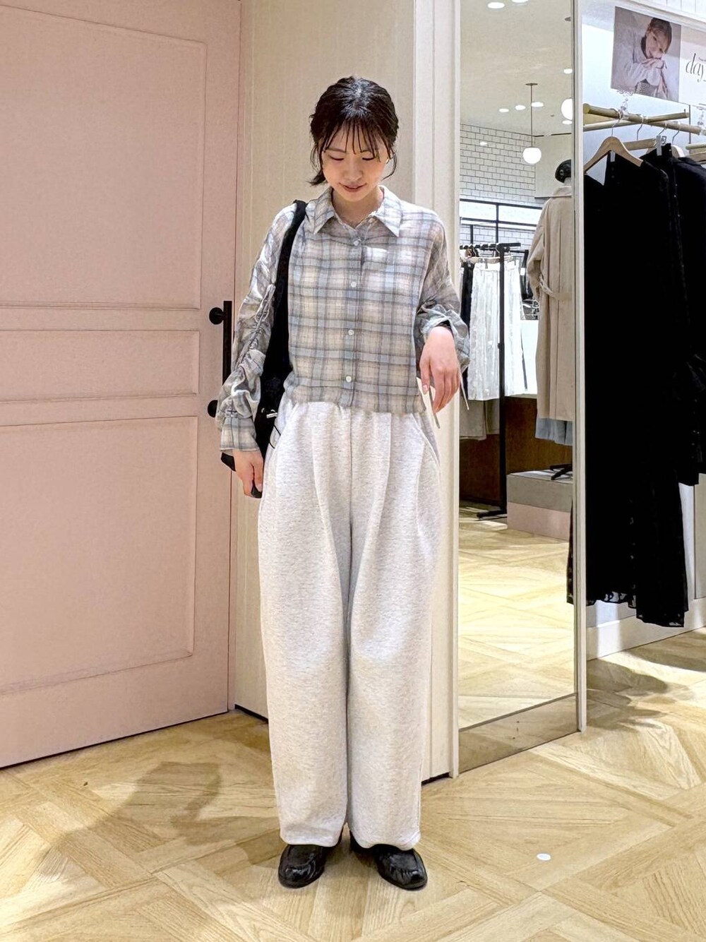 もりこ(LOWRYS FARM テラスモール湘南)のスウェットパンツ「カットイージーコクーンパンツ 292362」を使ったコーディネート
