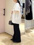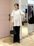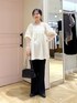 主役級のチュニックブラウス💞💞 1枚で着映えするほどデザインがかわいい! 胸元にギャザーデザインと肩のパフで スッキリした印象になります✨ 今の時期はまだ寒いのでシアーのインナーをいれても◎ ハーフパンツでワンピ風に着てももちろん可愛いです! が!私は足を出したくないのでフレアパンツで合わせました✌🏻