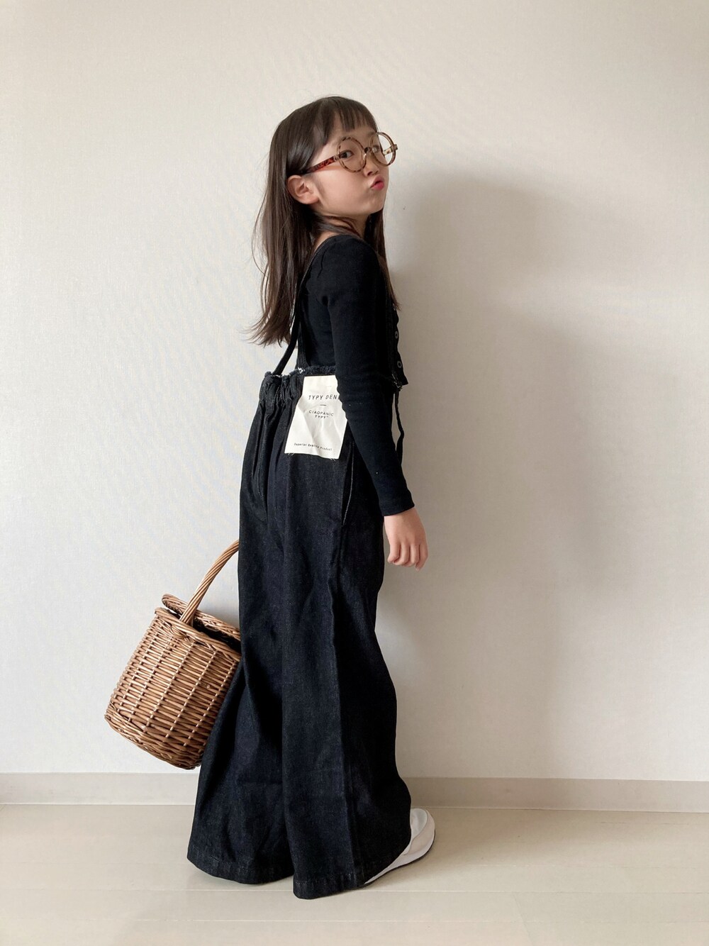うちのジェーン・バーキンちゃん😂 ブラックデニムのサスペンダーパンツ☻ ワイドでかっこいいです!
