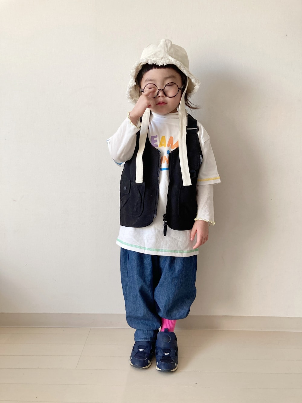 * 𝚝𝚘𝚛𝚒𝚌𝚘𝚝*のTシャツ/カットソー「BEAMS mini / スマイル ロゴ Tシャツ 23SS(90~130cm)」を使ったコーディネート