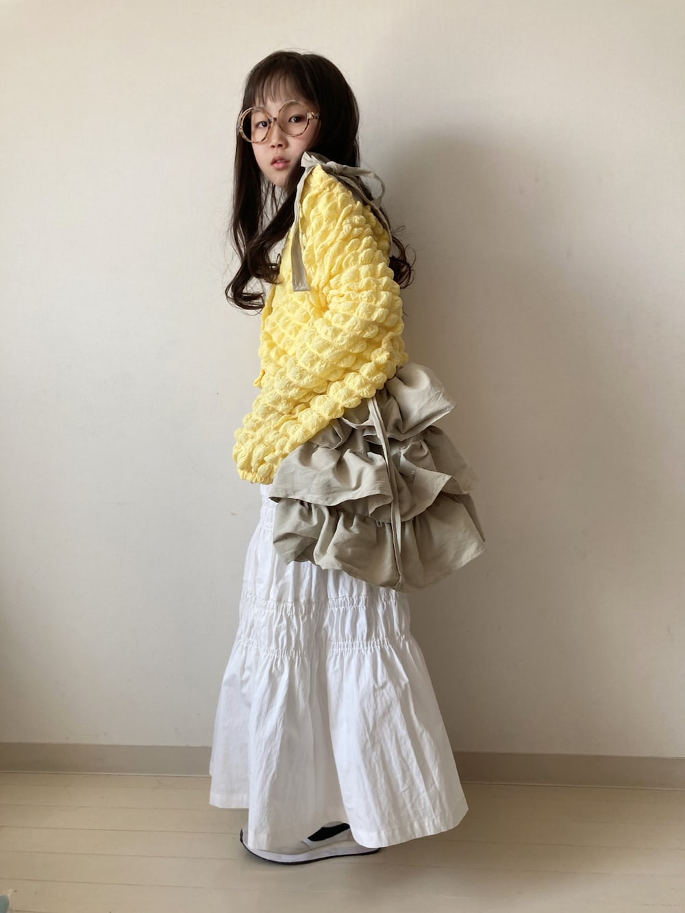 * 𝚝𝚘𝚛𝚒𝚌𝚘𝚝*のカーディガン/ボレロ「【KIDS】ポップコーンボリュームショートカーディガン」を使ったコーディネート