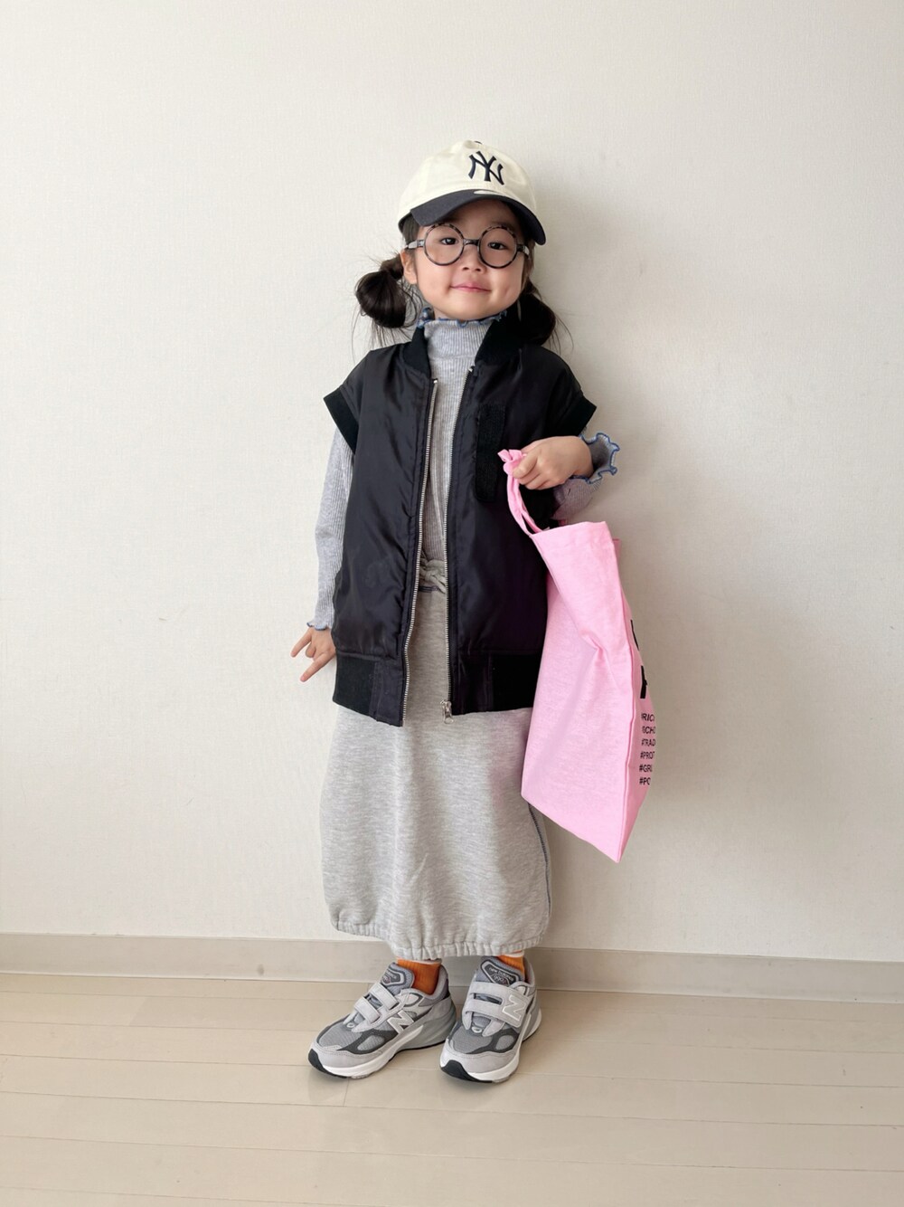ciaopanic typyさまとのコラボ企画です𓅸 ❁ MA-1ベスト ❁ 配色ステッチハイネックリブカットソー ❁ ワンポイント刺繍配色ステッチ裏毛バルーンスカート スウェットのバルーンスカート🥰 他に無い感じがさすが👍🏻ˎˊ˗な一枚です ベストもハイネックも、大人の服がそのままちっこくなった様で可愛い😍🩷