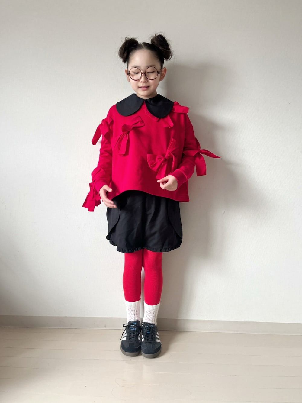 #pr 𝐥𝐨𝐰𝐫𝐲𝐬𝐟𝐚𝐫𝐦 𝐤𝐢𝐝𝐬 for junior࿐ ❁ リボンカットプルオーバーLS ❁ TRフリルショートパンツ ❁ マルエリブラウス ❁ TRフリルショートパンツ ❁ スカシアミソックス ニットのリボンのシリーズが可愛かったのがスウェット素材でも🥰🙌🏻 裾のフリルが可愛いショートパンツもとっても可愛いです。 甘くなりそうな組み合わせですが 着てみると意外とモードな雰囲気に🙆♀️
