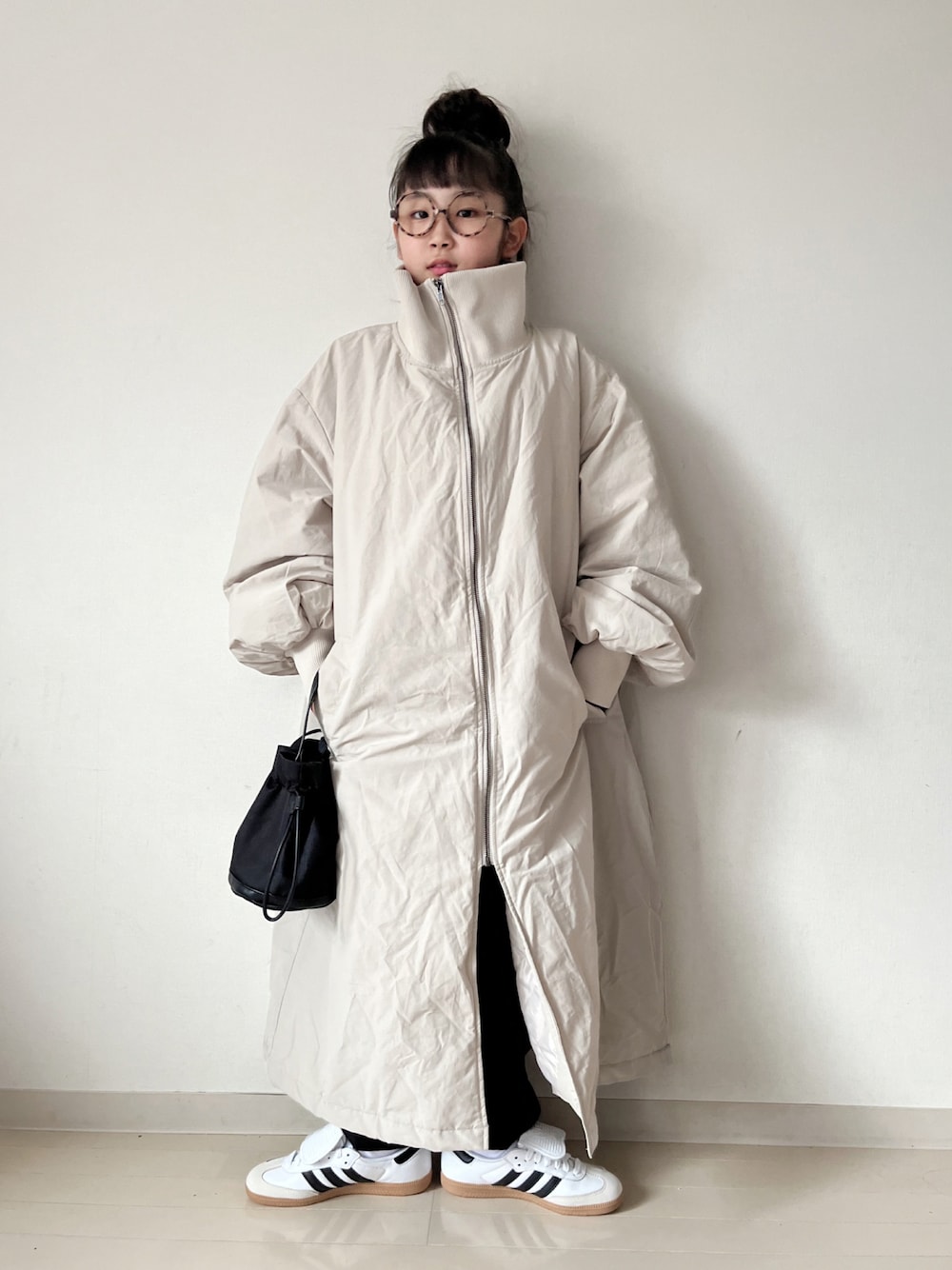 引きずりそうな丈でコート💡 子供の長いコート姿が好きなのです @ciaopanictypy ❁ 【新色追加】スタンドカラーボリュームスリーブコート もう定番でずっと有ってほしい名作アウター! 大人用なので本来はもっと短い丈設定です) ← スタンドネックもバルーンの袖口をグッとしめるリブも可愛い要素盛り沢山なのです ᵕ̈*⑅ 今年は着れるかな?と試しに着せたら可愛過ぎて色違いを買うか検討中◜. ̫.◝ 本人はガチのベンチコートみたいのを欲しがってるんだけど スポーツもしてないのにねえ😅 過渡期の体系、アウター選びも慎重になります 黒が有ればなー🐦⬛