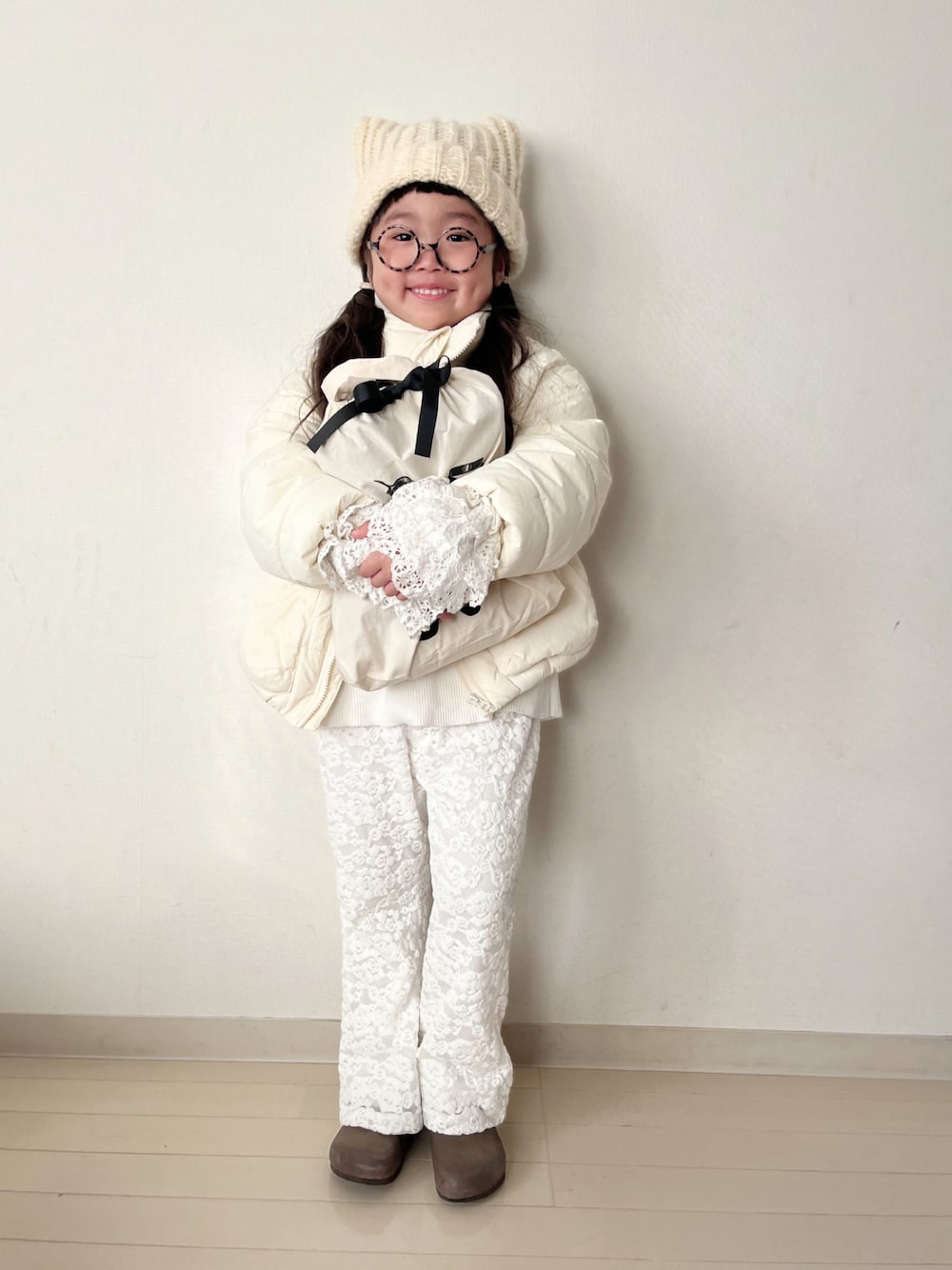 ホワイトコーデ 𝕔𝕚𝕒𝕠𝕡𝕒𝕟𝕚𝕔 𝕥𝕪𝕡𝕪 𝕜𝕚𝕕𝕤 ❁ 中綿カラージャケットアウター ❁ ネコ耳ニットビーニー ❁ スウェットライクニットプルオーバー ❁ 起毛レースストレッチイージーパンツ 猫の帽子は事情があって 好きを通り越して愛してます🐈 ¨̮♡⃛ パンツはレースでトレンド感満載🙌🏻 しっかり裏起毛なので冬のオシャレにも使えます ◡̉̈👍🏻ˎˊ˗