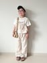 気になってた大人っぽいセットアップ とっても可愛かったです リネンっぽい素材で高見えしました◡̈ →タイムセールでとてとお得になってます😭 値段は見なかった事にします💦 ホントはお姉さんに着せたかったんだけど、130までのサイズ展開なので妹だけ🥲 インナーを変えたら結婚式とかも行けちゃいそうな雰囲気です 写真の途中で姉妹喧嘩が始まりキレてます𓅳