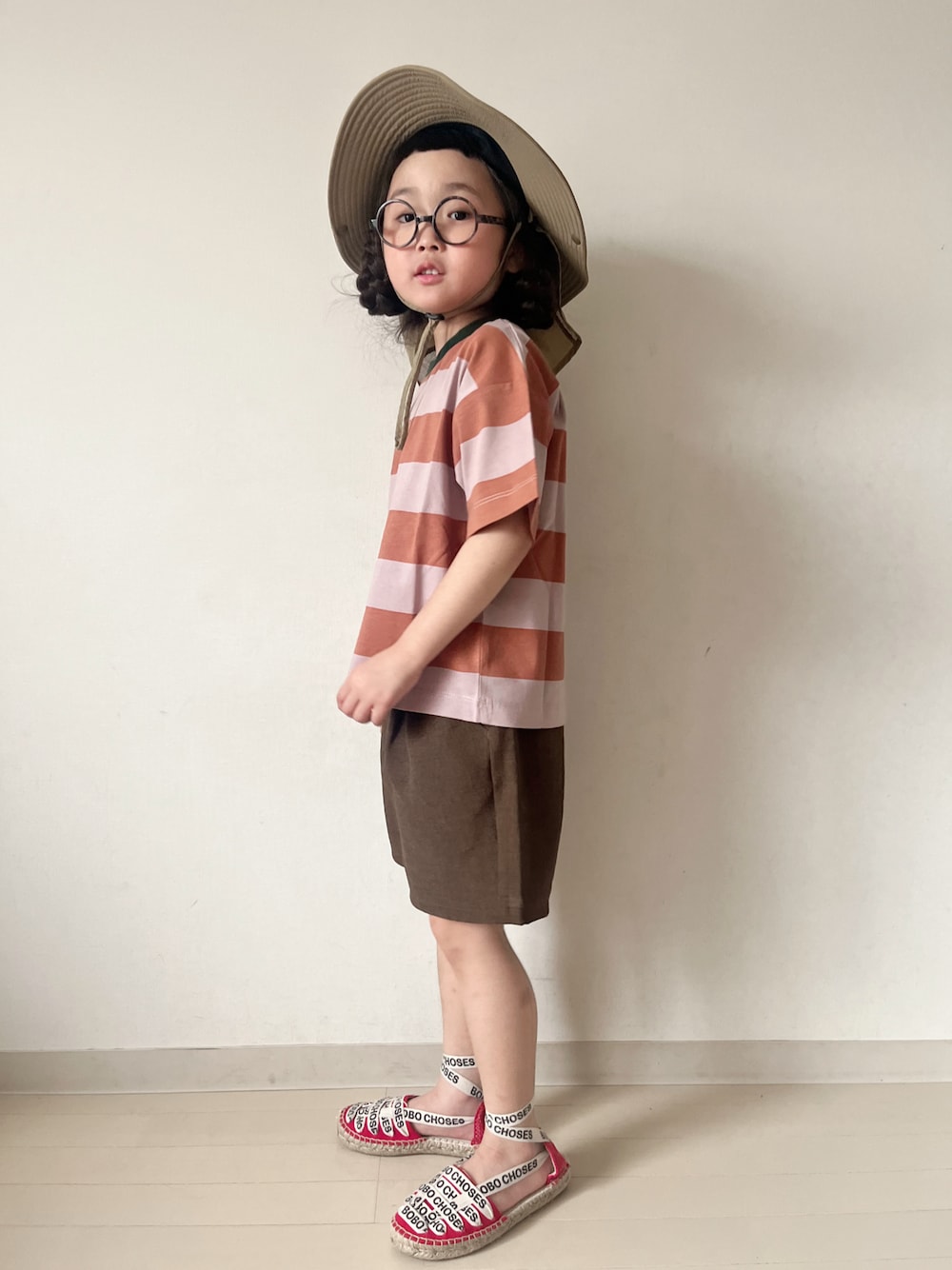 * 𝚝𝚘𝚛𝚒𝚌𝚘𝚝*のTシャツ/カットソー「ワイド ボーダー プリント Tシャツ 2025SS(100~140cm)」を使ったコーディネート