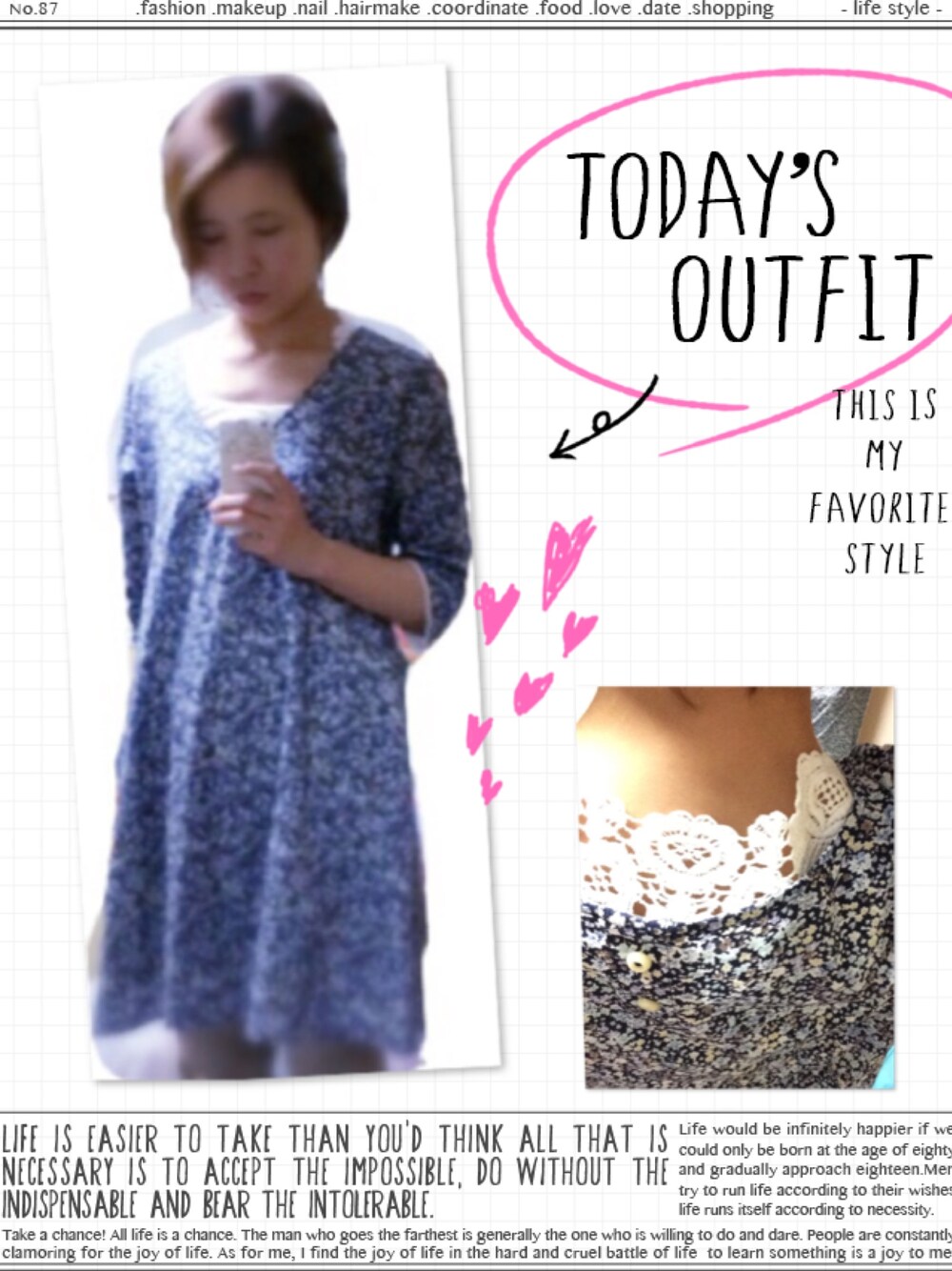 レースに一目惚れしたタンクと、花柄ワンピで久しぶりの女子コーデ。 後ろ襟ぐりからチラッと覗くレースがポイント(*^_^*)