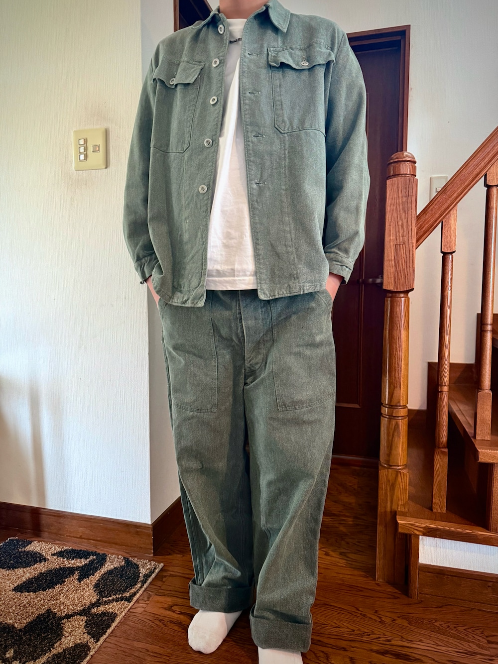 白Tシャツ、スイス軍デニムセットアップを合わせたスイスミリタリーコーデ。 最近なんかセットアップにハマってます。 スイス軍ってオシャレな軍服きとったんやなーと思いつつ、動きにくくなかったんかなって着てて思いました笑 ちょっとグリーンっぽい色味が春っぽくてええ感じ。 トップス:uniqlo アウター:swissmilitary パンツ:swissmilitary アクセサリー:chromehearts