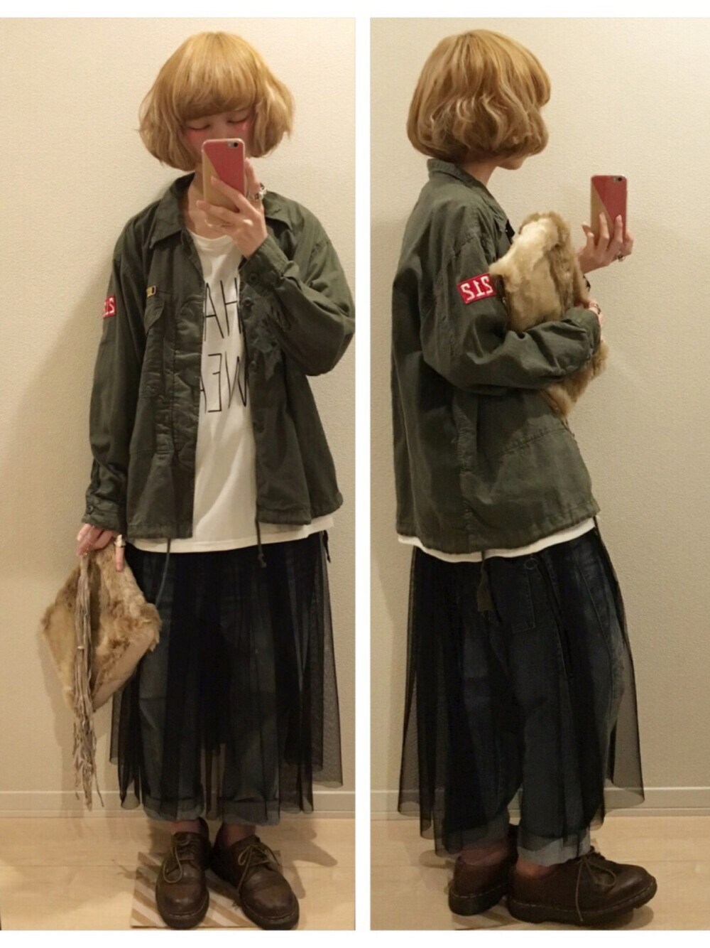 みしゃへむらいと𖤐°。のジャケット/アウター「<予約>リメイクミリタリージャケット」を使ったコーディネート