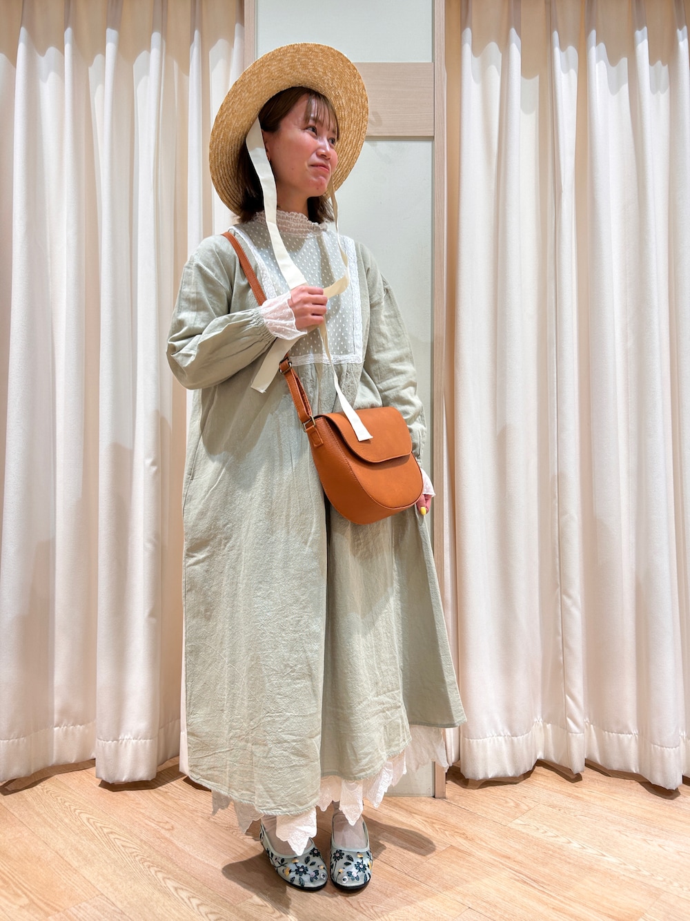 りえのハット「リボンカンカン帽」を使ったコーディネート