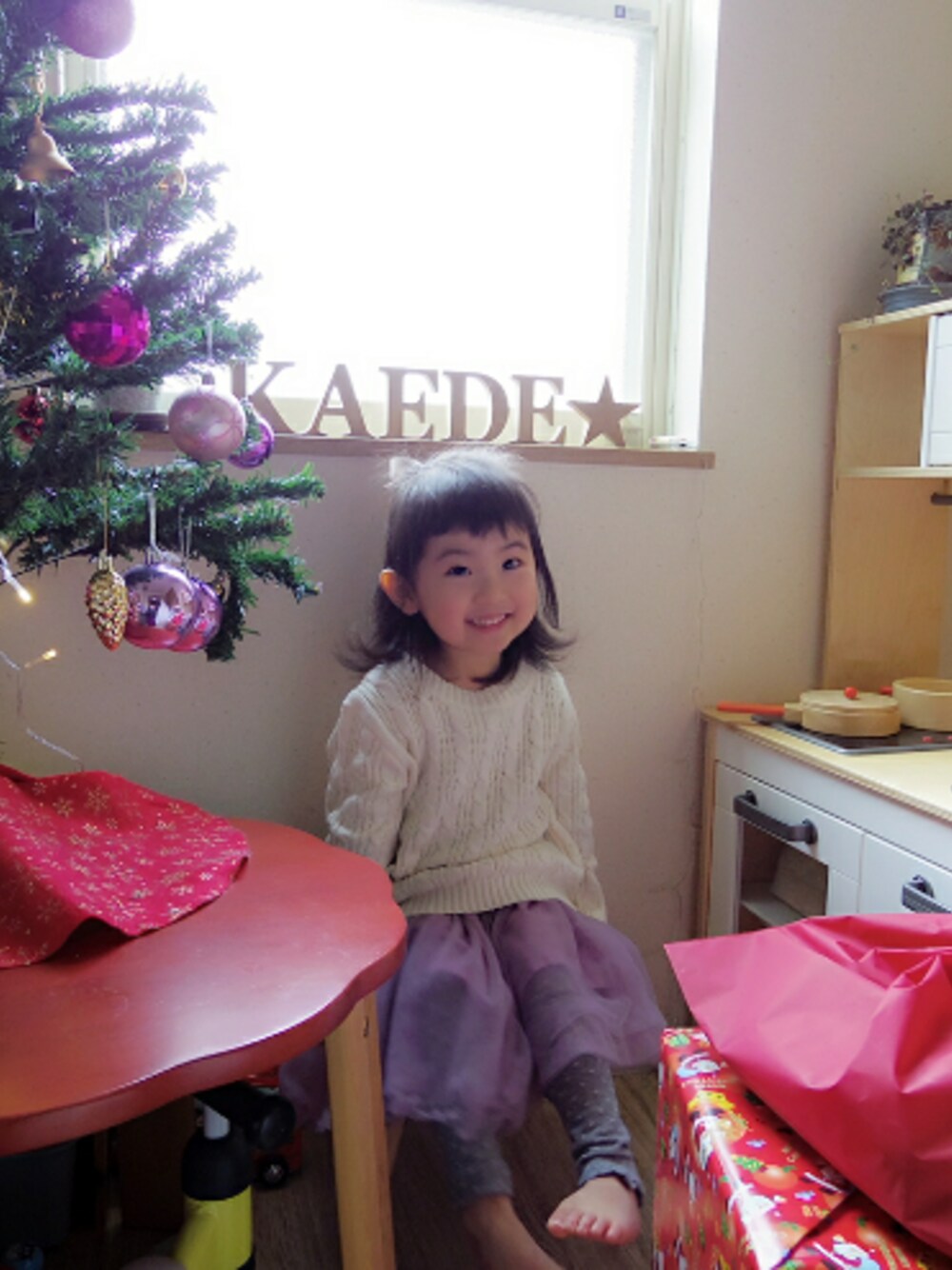 クリスマスのコーデ🎂 ユニクロのセールで買ったセーター110だからブカブカだけど、可愛い✨ イベント事の時、このスカートばっかりになっちゃってるけど。娘のお気に入り✨