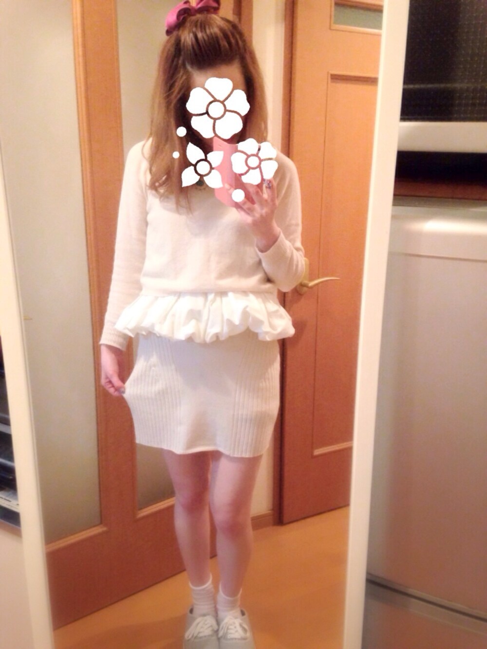 トップス→リリーブラウン スカート→リリーブラウン アクセ→ジュジュ きれい目だけど、崩してペタンコスニーカー❤︎