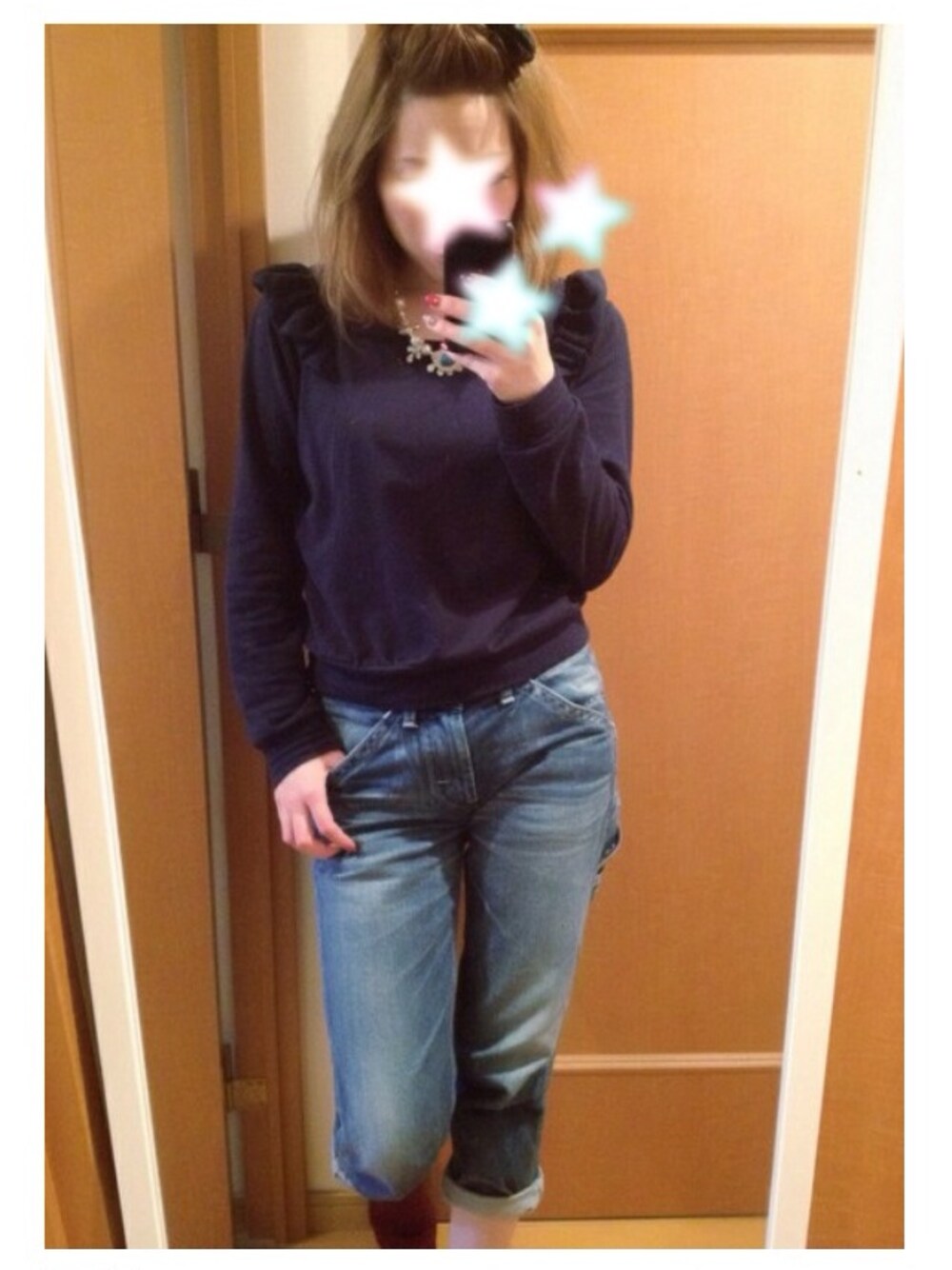 トップス→ローズバット パンツ→Lee アクセ→joujou でこっぱちラフスタイル