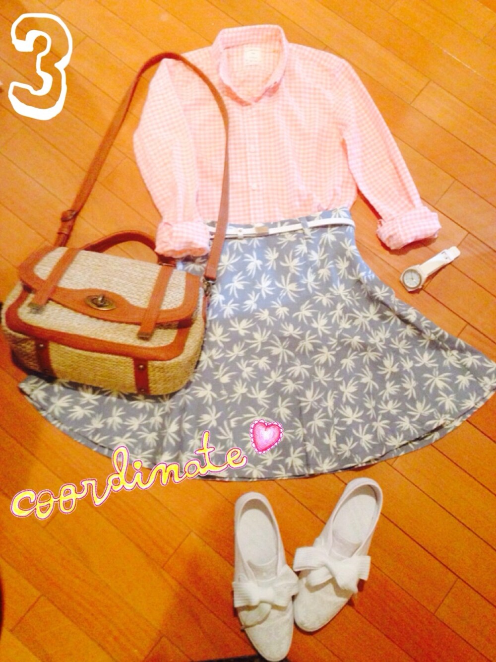 シャツ*GAP ベルト*ROSE BUD ギンガムチェック×ヤシの木 柄×柄でも小柄(薄色)×大柄(薄色)なら 挑戦しやすい♪