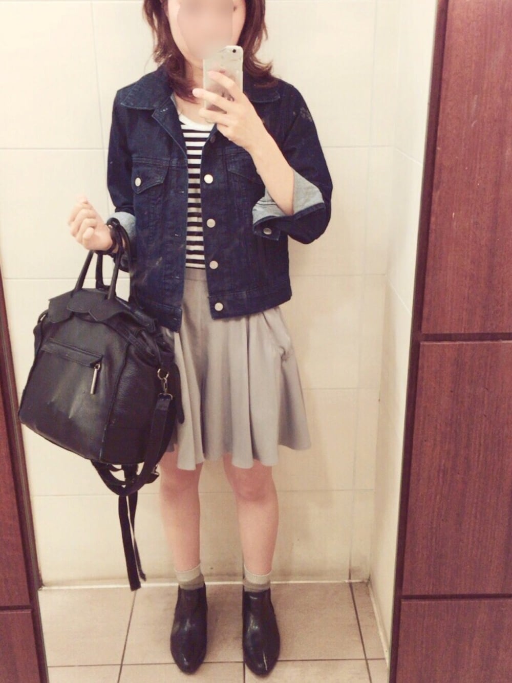 デニムジャケット着納め〜T^T すぐ寒くなっちゃったからちょっとしか着られなかった。。残念💧 これからは他のアウターを楽しもうー>_< パフスリーブが付いた珍しいボーダーT可愛いです◟̆◞̆