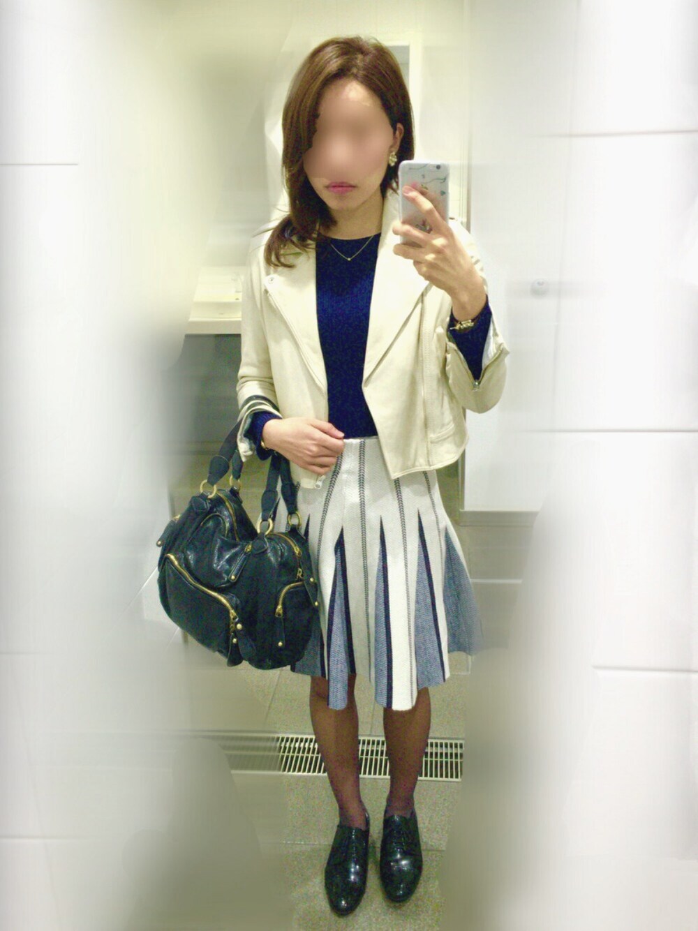 スカートは柄に一目惚れして買いました◟̆◞̆ 布地に厚みがあって暖かいです♪ ライダースにエナメルの靴とスカートでフェミニンさをプラスしてみました^ ^