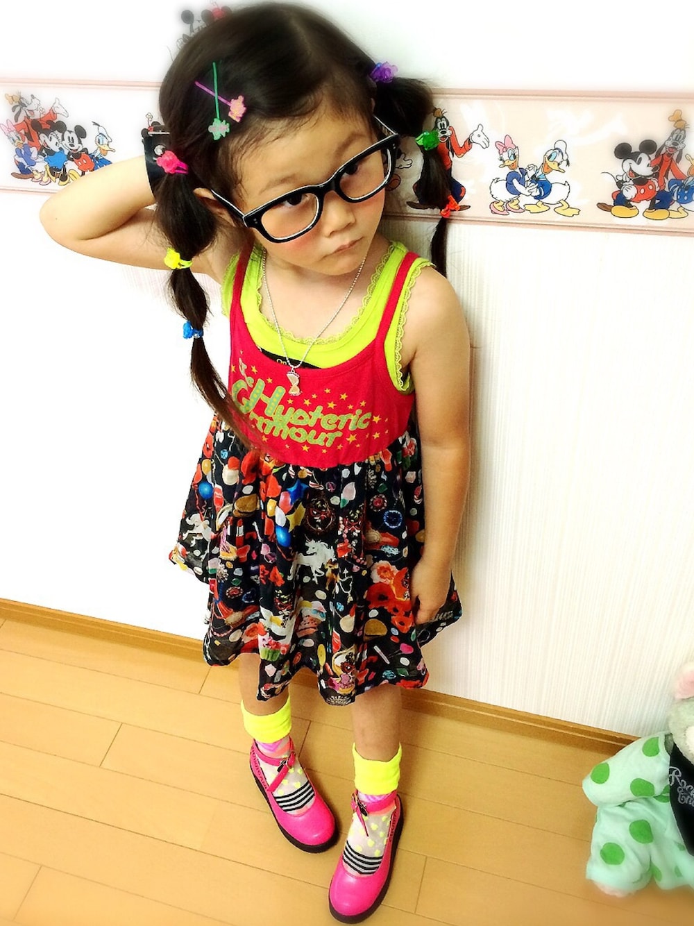 いろぴぴぴのワンピース「bettie mini collage story 総柄 キャミソールワンピース」を使ったコーディネート