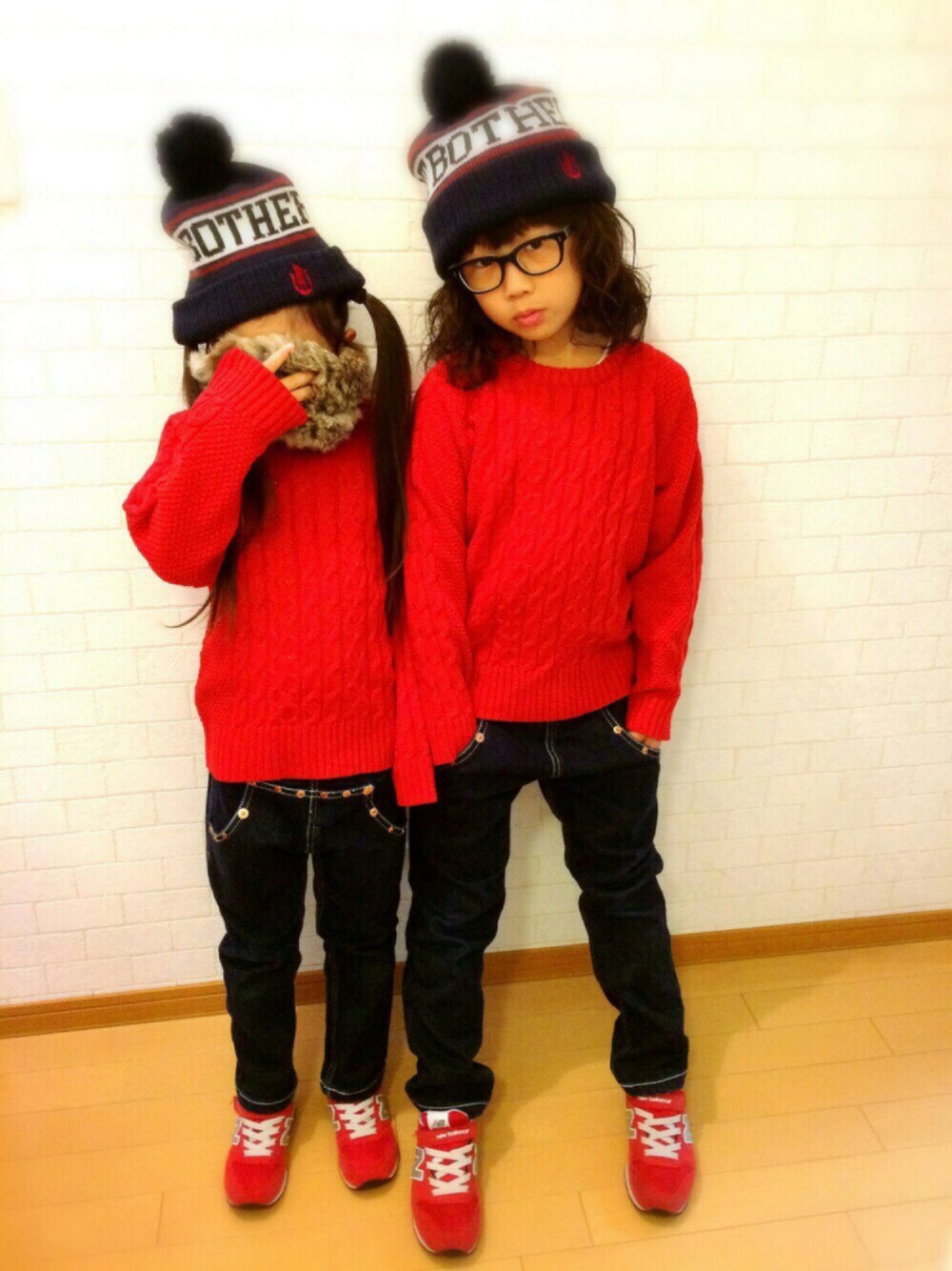 11月6日コーデ いろちゃんの幼稚園用のタイツを買いに一年ぶりぐらいに西松屋に行ったら、可愛いニットを見つけてしまいイロチで買っちゃいましたなコーデ😝