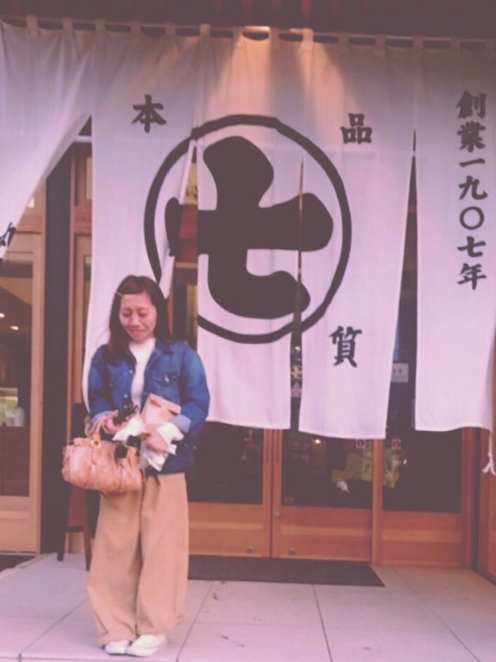 友だちと地元の抹茶アイスを食べにいきました( ^ω^ )♡ お土産がたくさん抱えたまま撮られました 笑