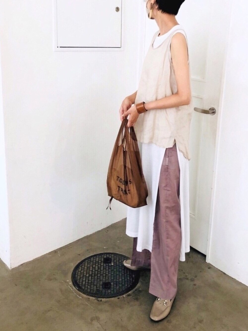色味を少しずつ変えて柔らかめな グラデーション重ね着をしてみました お腹周りも隠れるしゆるゆるなのに アイラインが出来てスッキリ見えました ライトグレー エンチャンテッドの ローファーは晴雨兼用で突然の雨に 怯えず安心。心安らかに過ごせます シアー素材の洗濯表示のタグが 外から見えちゃう問題、近い未来 見えない洗濯表示タグを開発していただきたいー涙 ↑切るのはそれはそれで。。。。 どうしたもんかと。。。。