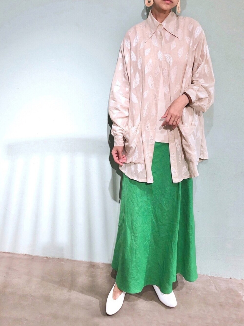 やっぱり本革バブーシュがなんでも 合わせやすく履きやすいので こればかりになりがち。。。。。 古着屋さんで購入したシャツの ビックサイズでAラインに広がるところも グリーンのスカートのカラーも ラップタイプもようでそうでない マーメイドのようなラインのスカートも とにかく色々お気に入りな本日 梅雨入りしましたが 少し涼しくなってまだまだシャツと バブーシュが楽しめると思うと 嬉しくてなりません