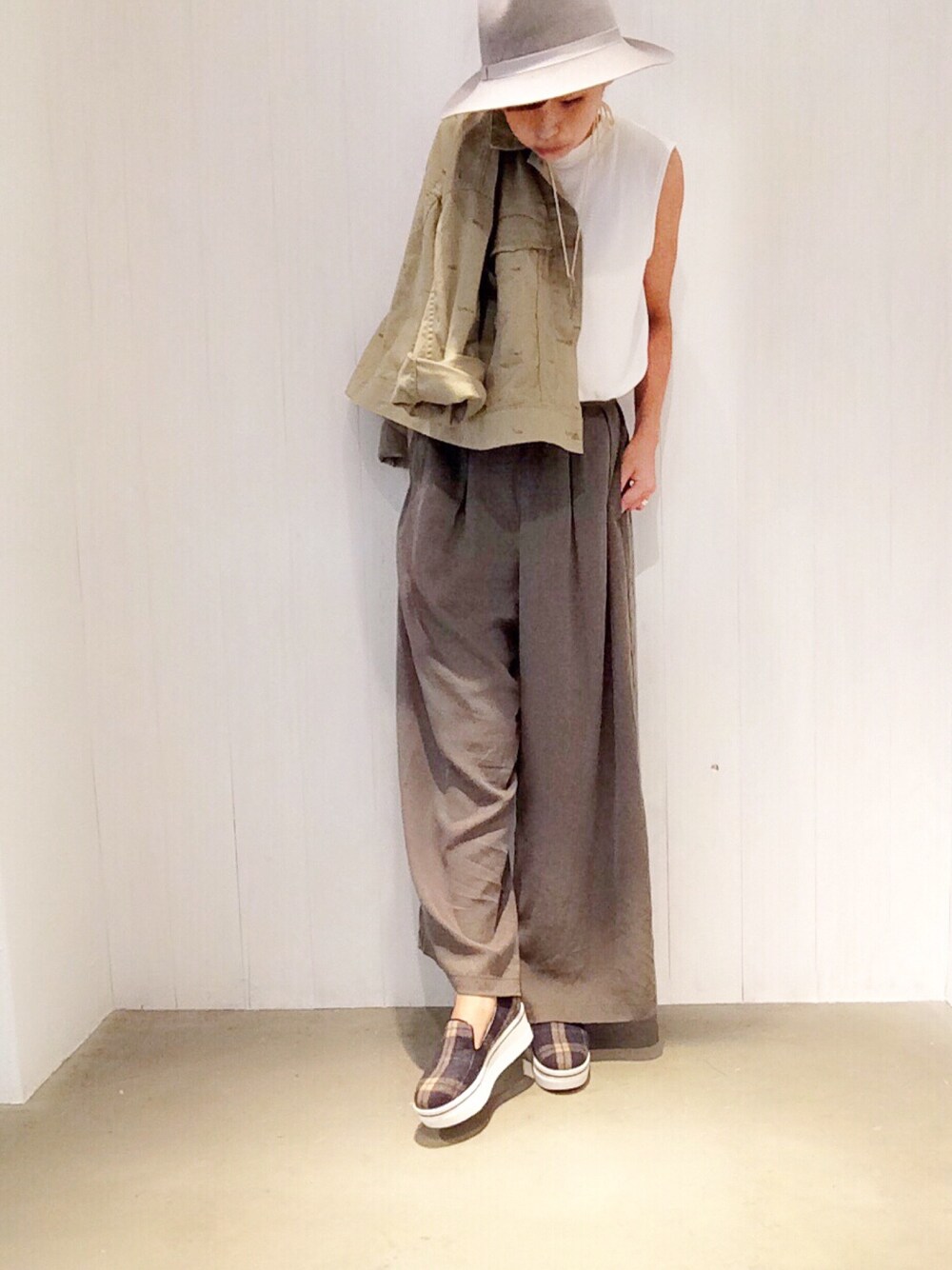 寒いか暑いかもう、分からないから。メリハリをつけました! ジャケットで完全防備または、タンクトップで暑さ対策!! 色や柄で秋を取り入れました。