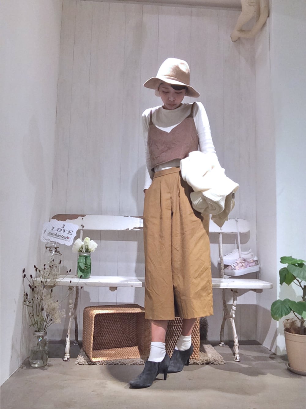 Rieko のハットを使ったコーディネート